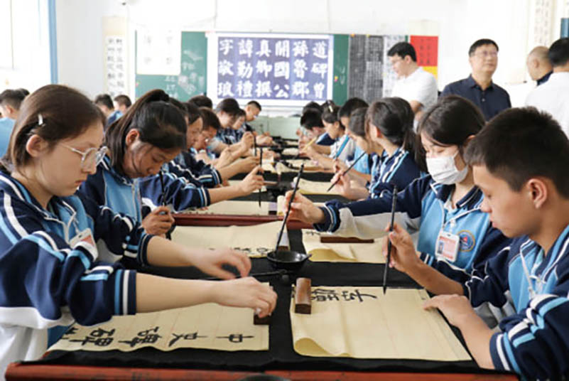 新疆吐鲁番市实验中学各族学生练习书法